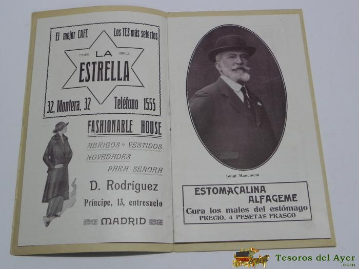 PROGRAMA DEL TEATRO REAL, 12 DE DICIEMBRE DE 1914, OPERA PARSIFAL, TIENE 24 PAG, MIDE 23 X 13 CMS.