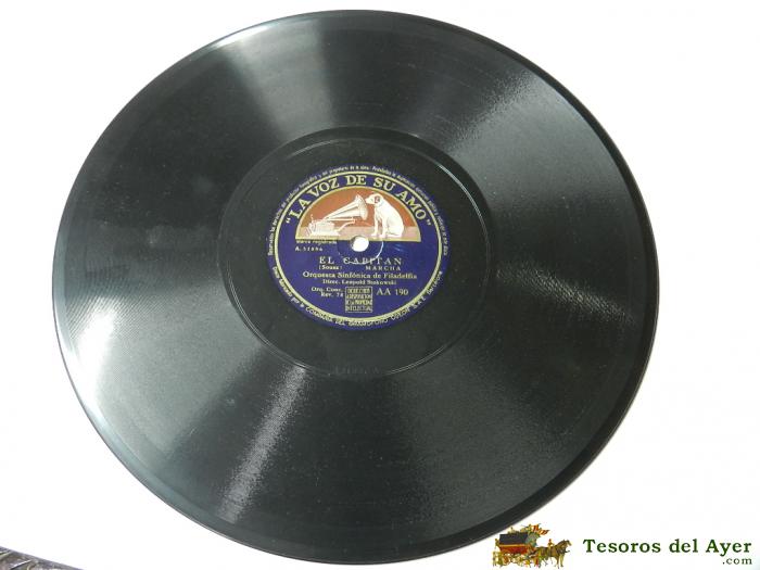 DISCO DE PIZARRA DE SINFóNICA DE FILADELFIA BAJO LA DIRECCIóN DEL MAESTRO L. STOKOWSKI - EL CAPITáN - PIZARRA 10" LA VOZ DE SU AMO AA 190 - ESPAñA.