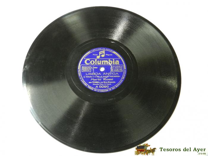 DISCO DE PIZARRA DE MARIO ROSSI: EL PAJARERO / LISBOA ANTIGA, CON TEJADA Y SU GRAN ORQUESTA. (J. GALHARDO, A. DO VALE Y R. PORTELA), ED. COLUMBIA, BUEN ESTADO.