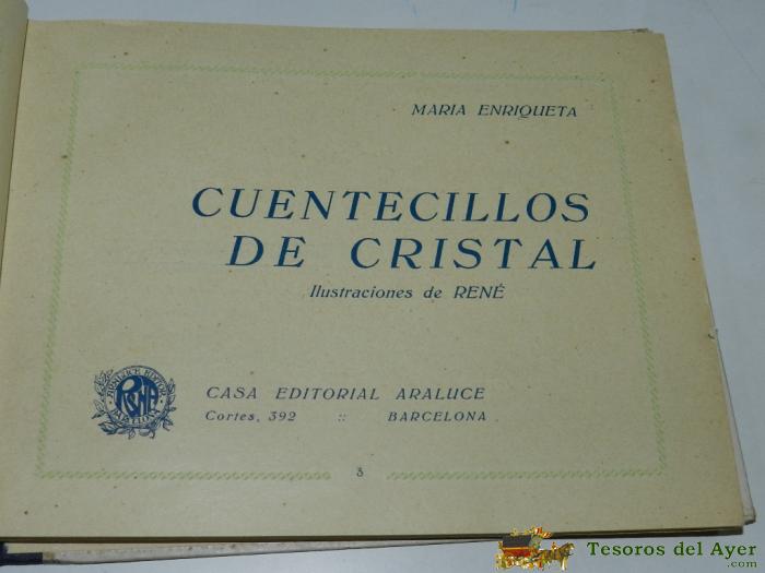 LIBRO DE CUENTOS INFANTIL CUENTECILLOS DE CRISTAL POR MARIA ENRIQUETA. CASA EDITORIAL ARALUCE. BARCELONA. MIDE 18,5 X 14,5 CM. TIENE 111 PáGINAS. BUEN ESTADO DE CONSERVACIóN. TIENE UNA DEDICATORIA EN LA PARTE INTERIOR DE LA PORTADA ESCRITA EN LARACHE 1940