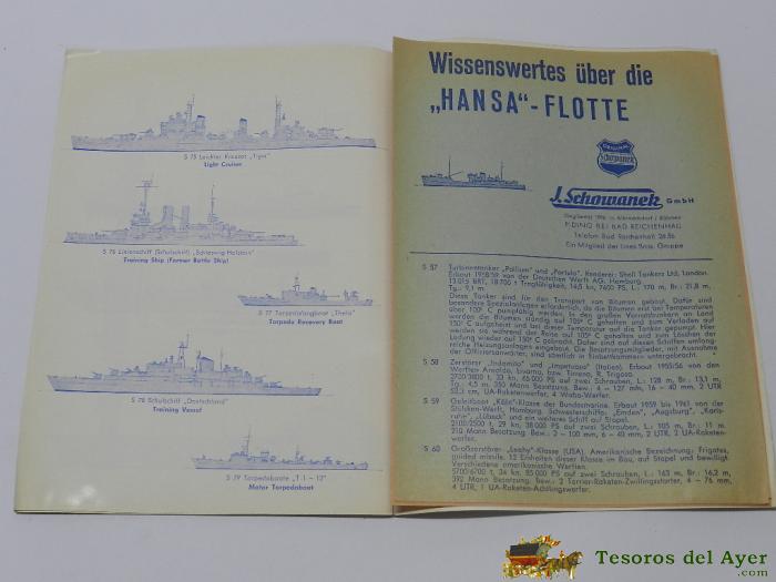 FOLLETO CATALOGO DE HANSA MODELLE, BARCOS ESCALA 1/1250, NUMERO 2/62, MIDE 21 X 15,5 CMS.