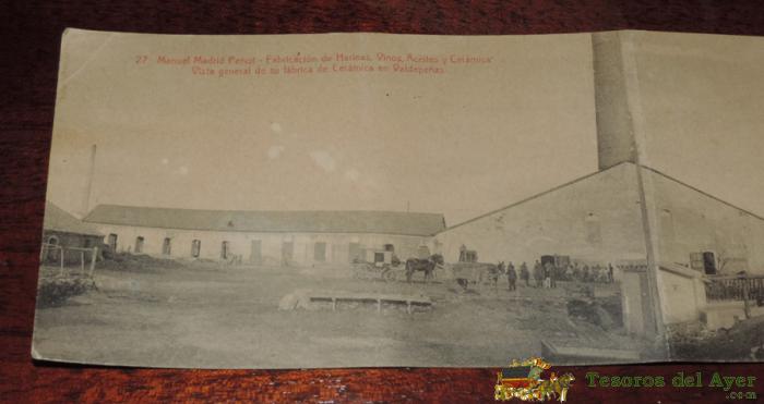 ANTIGUA POSTAL DOBLE DE VALDEPEÑAS (CIUDAD REAL) MANUEL MADRID PENOT - FABRICACION DE HARINAS, ACEITES, VINOS Y CERAMICAS, VISTA GENERAL DE SU FABRICA DE CERAMICA - ED. CASTAÑEIRA. SIN CIRCULAR