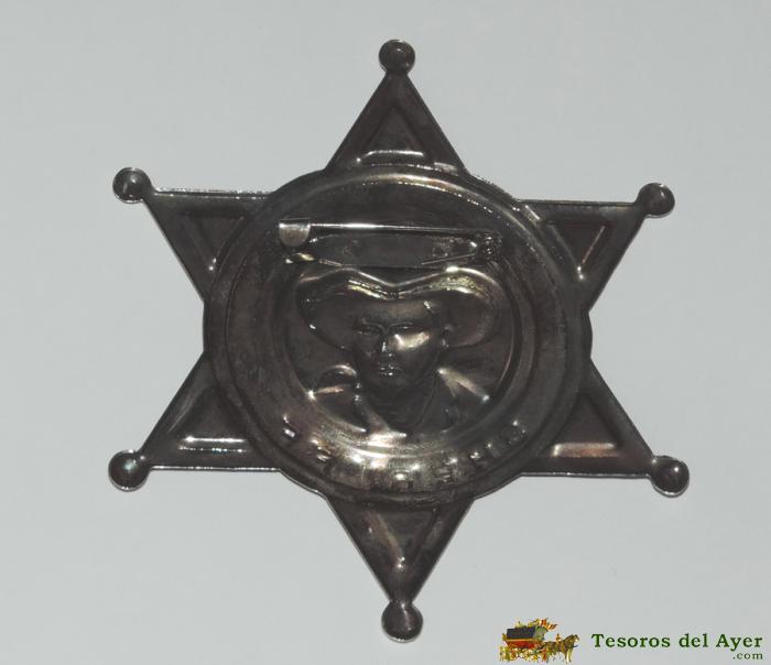 PLACA CON FORMA DE ESTRELLA SHERIFF, REALIZADA EN CHAPA Y CON IMPERDIBLE POR LA PARTE TRASERA, MIDE 9 CMS.