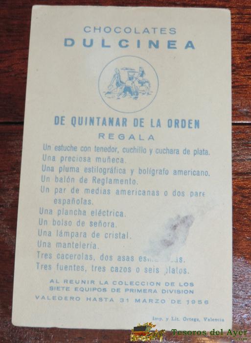 MANCHON, C. DE F. BARCELONA, FUTBOL, 1956, CROMO CHOCOLATES DULCINEA, MIDE 10,5 X 6,7 CMS.