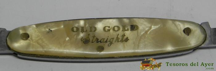NAVAJA CON PUBLICIDAD DE TABACO OLD GOLD STRAIGHTS, MIDE ABIERTA 14 CMS.