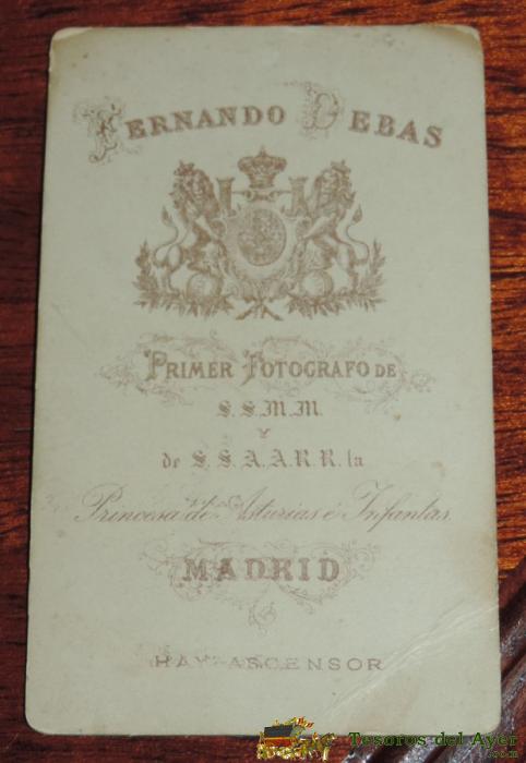 FOTOGRAFIA ALBUMINA TIPO CDV, FOTOGRAFIA FERNANDO DEBAS, MADRID, MIDE 10 X 6 CMS. APROX.