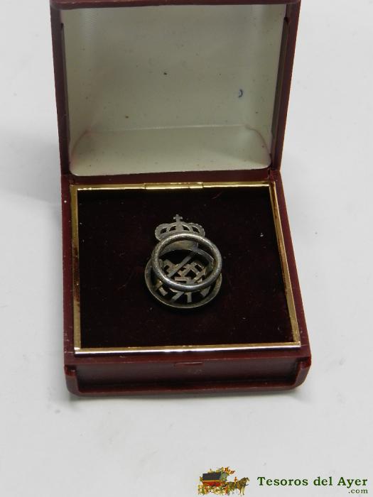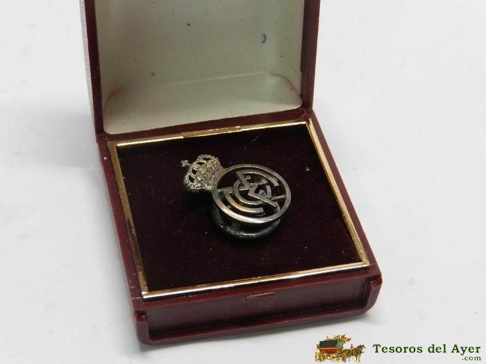 INSIGNIA DEL REAL MADRID EN PLATA DE LEY, CON SU ESTUCHE ORIGINAL., EXCELENTE ESTADO, LA INSIGNIA MIDE 2,1 CMS. LA TAPA DEL ESTUCHE SE SEPARA DE LA BASE.