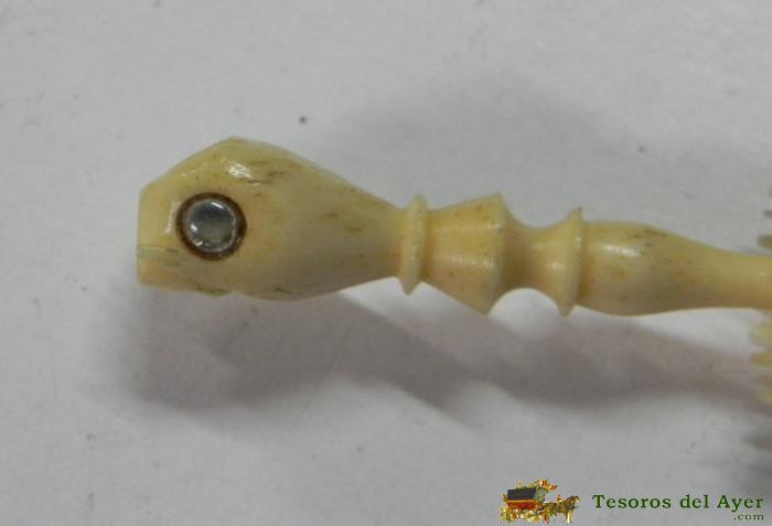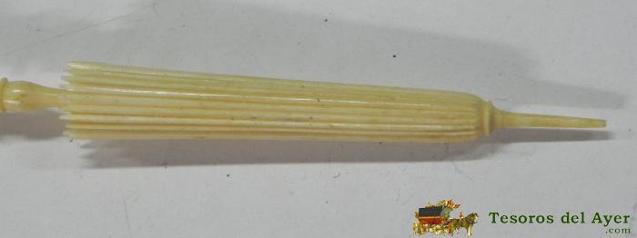 ANTIGUO ALFILETERO O ESTUCHE AGUJAS EN HUESO O SIMILAR CON FORMA DE PARAGUAS - AñO 1930 APROX. MUY BUEN ESTADO Y COMPLETO, CON EMPUñADURA A ROSCAS Y EN EL EXTREMO DEL MANGO UN DIMINUTO VISOR Y QUE MIRANDO POR EL SE PUEDE VER UNA IMAGEN DE PARIS. MIDE 12 CM. DE LARGO.