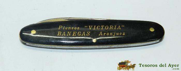 ANTIGUA NAVAJA CON PUBLICIDAD DE ABONOS VICTORIA BANEGAS, ARANJUEZ, MARCA SOLINGEN, AÑOS 20, 30 APROXIMADAMENTE, MIDE ABIERTA 18,4 CMS. DE LONGITUD,