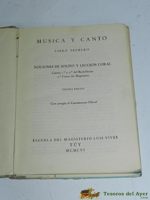 LIBRO MúSICA Y CANTO: LIBRO PRIMERO. NOCIONES DE SOLFEO Y LECCIóN CORAL. CURSO 1º Y 2º DEL BACHILLERATO, 2º CURSO DE MAGISTERIO, VV.AA. MúSICA. GéNEROS MUSICALES. MéTODOS Y ESTUDIOS DE MúSICA PARA LOS DISTINTOS INSTRUMENTOS. LIBROS DE TEXTO PARA LA ENSEñA