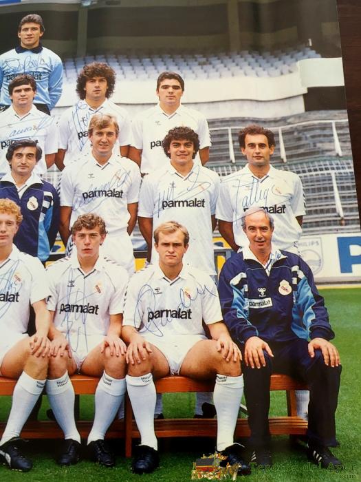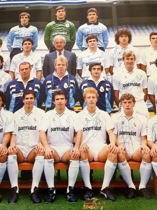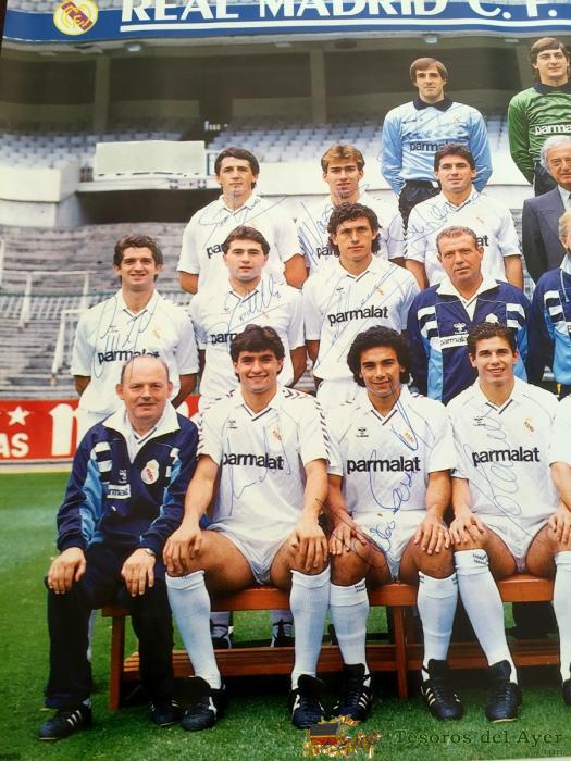 CARTEL DEL REAL MADRID TEMPORADA 1986 1987 CON FIRMA AUTOGRAFA DE PUÑO Y LETRA DE LOS JUGADORES QUE APARECEN EN EL, 100% ORIGINAL, CON PUBLICIDAD DE HUMMEL, BUEN ESTADO DE CONSERVACION, VER LAS OTROS FOTOGRAFIAS PUESTAS CON LOS DETALLES, LOS JUGADORES QUE APARECEN SON LOS SIGUIENTES: BUYO, CHENDO, SOLANA, SANCHIS, CAMACHO, MICHEL, GALLEGO, GORDILLO, HUGO SáNCHEZ, BUTRAGUEñO, VALDANO, AGUSTíN, SALGUERO, MARTíN VáZQUEZ, PARDEZA, JUANITO, OCHOTORENA, MINO, SANTILLANA, JANKOVIC, MACEDA, CHOLO, MIDE 63 X 48 CMS.