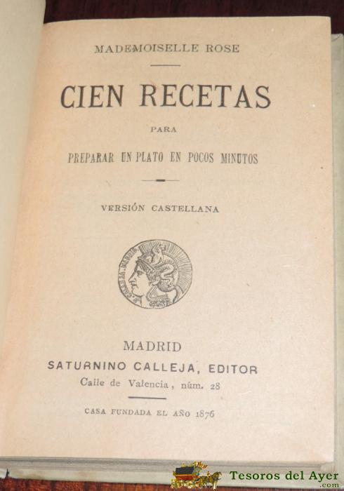 100 MODOS DE PREPARAR UN PLATO EN POCOS MINUTOS, S. CALLEJA, BIBLIOTECA POPULAR LXXXI, PRINCIPIOS DEL SIGLO XX, TIENE 222 PAGINAS, 12 X 8,5 CMS. ORIGINAL AL 100%