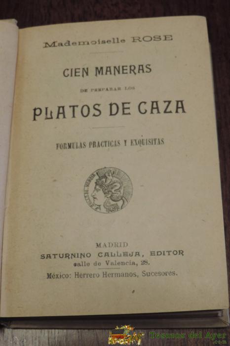 100 PLATOS DE CAZA, MADEMOISELLE ROSES, S. CALLEJA, BIBLIOTECA POPULAR XV, PRINCIPIOS DEL SIGLO XX, TIENE 221 PAGINAS, 12 X 8,5 CMS. ORIGINAL AL 100%