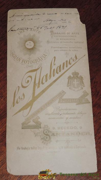 FOTOGRAFIA ALBUMINA DE TENIENTE CORONEL 1891, MIDE 20,5 X 10 CMS., FOTOGRAFIA DE LOS ITALIANOS, DE SANTANDER