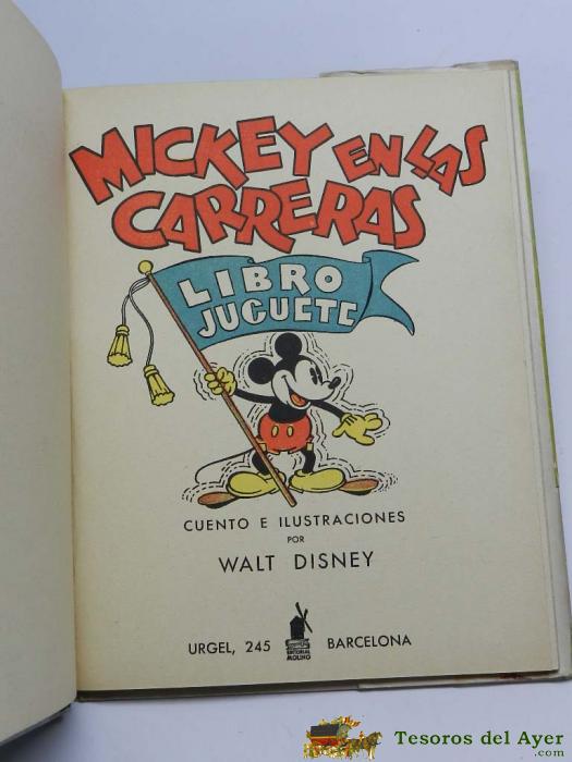 ANTIGUO CUENTO MICKEY EN LAS CARRERAS - LIBRO JUGUETE - CUENTO E ILUSTRACIONES POR WALT DISNEY - ED. MOLINO - 24 PAG.- MIDE 26 X 20 CMS - BUEN ESTADO, A FALTA DE LOS PERSONAJES.