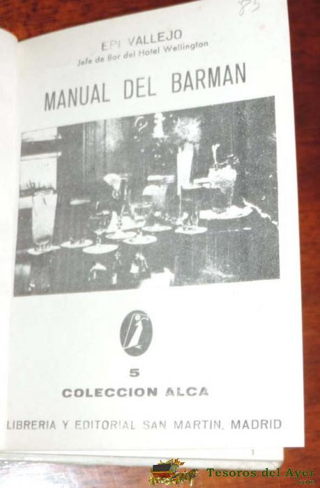 LIBRO EPI VALLEJO. MANUAL DEL BARMAN. COCKTELERIA. ED. SAN MARTíN, 1969. COLECCIóN ALCA Nº 5, AñO 1969. TIENE 78 PAG. ILUSTRADO., MIDE 15 X 11 CMS.