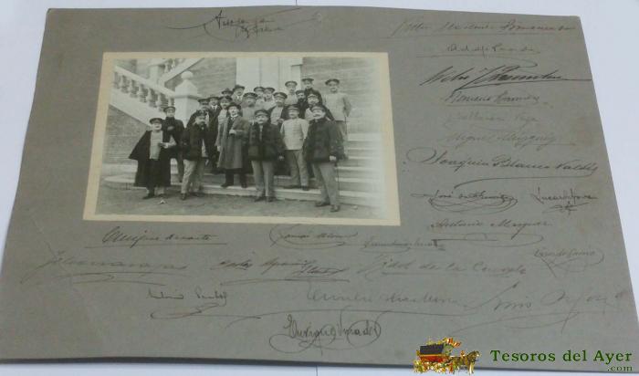 FOTOGRAFIA DE GRUPO DE OFICIALES DE LA ACADEMIA DE INFANTERIA DE TOLEDO, CON DIAZ MOREU (GOBERNADOR CIVIL DE TOLEDO, EN EN CENTRO DE PAISANO), AÑO 1918, CON FIRMAS AUTOGRAFAS DE TODOS LOS OFICIALES, FOTO ARTISTICO, TOLEDO, MIDE 34 X 25 CMS.