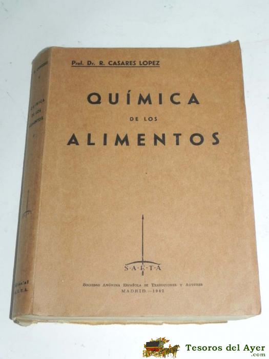LIBRO QUIMICA DE LOS ALIMENTOS. PRF. DR. R. CASARES LOPEZ, AÑO 1942, TIENE 530 PAG.