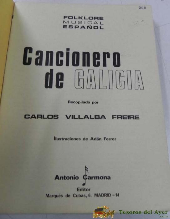 CANCIONERO DE GALICIA. CARLOS VILLALBA FREIRE. A. CARMONA, EDITOR, 1976.POR CARLOS VILLALBA FREIRE, SOBRECUBIERTA. ILUSTRACIONES. TIENE 154 PáGINAS. MIDE 21 X 16 CMS.