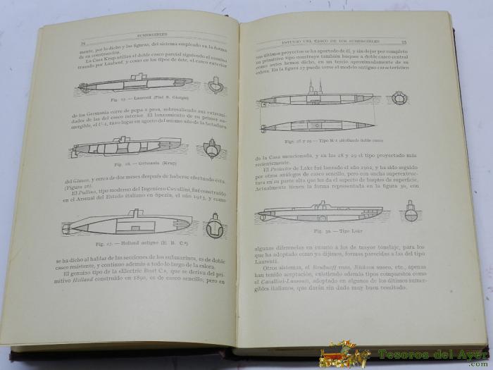 LIBRO SUMERGIBLES POR ALDEREGUÍA, CLAUDIO, ED. CALPE, MANUALES CALPE DE INGENIERíA CIVIL, INDUSTRIAL Y MILITAR, BAJO LA DIRECCIóN DE E. TERRADAS, BARCELONA, 1923. TELA EDITORIAL CON DORADOS EN LOMO. OBRA ILUSTRADA CON 212 FIGURAS Y TRES GRáFICOS DESPLEGABLES CON LOS PLANOS, SECCIONES Y PLANTAS DEL TORPEDERO SUMERGIBLE TIPO FIAT-SAN GIORGIO, EL TIPO MODERNO ELECTRIC BOAT Y EL SUMERGIBLE LAUBEUF INTERESANTE OBRA QUE ABORDA EL ESTUDIO DE LOS SUMERGIBLES. BUEN ESTADO. MIDE 21.5 X 14 CMS. TIENE 374 PAG.