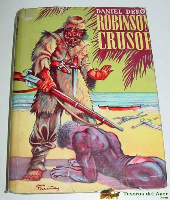 ANTIGUO LIBRO ROBINSON CRUSOE - POR DANIEL DEFOE - N. 1 - PORTADA ILUSTRADA POR FARIÑAS - COLECCION JUVENIL CADETE, ED. MATEU - 255 PAG - MIDE 19 X 14 CMS.