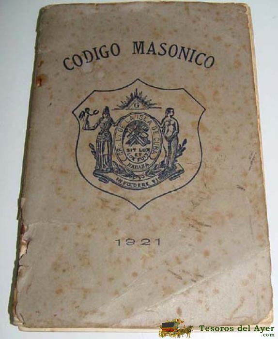 ANTIGUO LIBRO CODIGO MASONICO DE LA ISLA DE CUBA - AÑO 1921 - 1ª EDICION