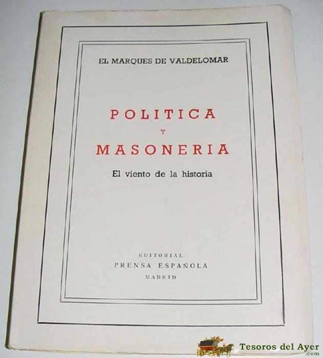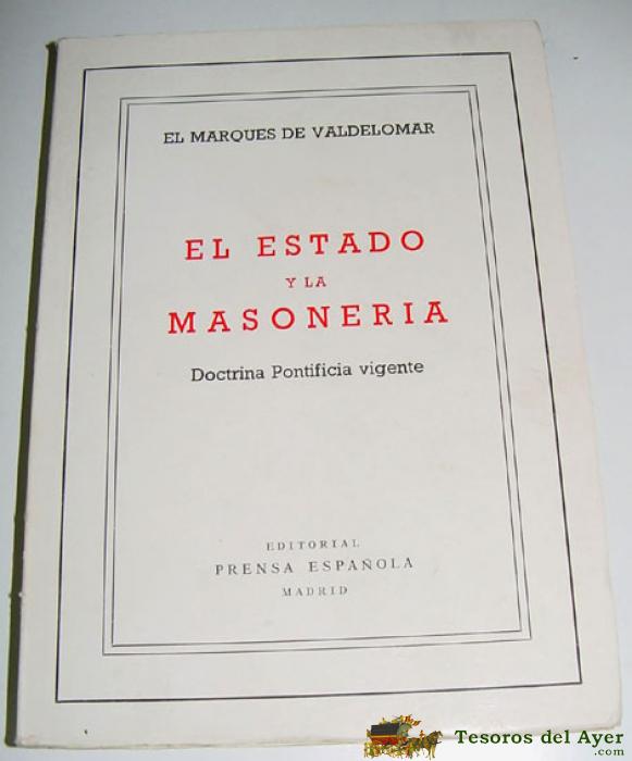 EL ESTADO Y LA MASONERIA: DOCTRINA PONTIFICA VIGENTE - DE VALDELOMAR, EL MARQUES - 1972. PRENSA ESPAñOLA, MADRID. 246 P. 21X15 CM. ENC. RúSTICA (FRANCMASONERíA, COMPAñíA DE JESúS, SECTAS, ...)