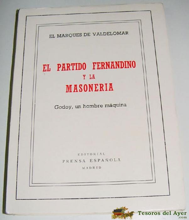 EL PARTIDO FERNANDINO Y LA MASONERIA. GODOY, UN HOMBRE MáQUINA - PLANTADA Y AZNAR, JORGE. (MARQUéS DE VALDELOMAR) - MADRID, EDIT. PRENSA ESPAñOLA, 1974,4º, 314 PáGS. HISTORIA MASONERIA