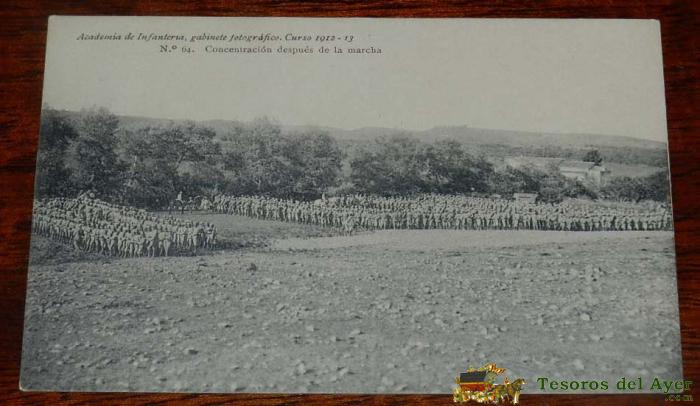POSTAL DE LA ACADEMIA DE INFANTERIA TOLEDO, GABINETE FOTOGRáFICO, CURSO 1912-13. N. 64. CONCENTRACIóN DESPUES DE LA MARCHA. ED. PELAEZ. NO CIRCULADA.