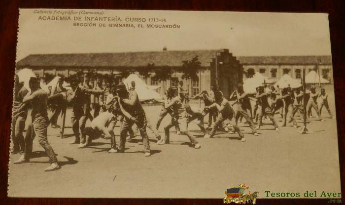 POSTAL DE LA ACADEMIA DE INFANTERIA. CURSO 1913-14, SECCION DE GIMNASIA, EL MOSCARDON, ED. GABINETE FOTOGRÁFICO (CARMONA), NO CIRCULADA.