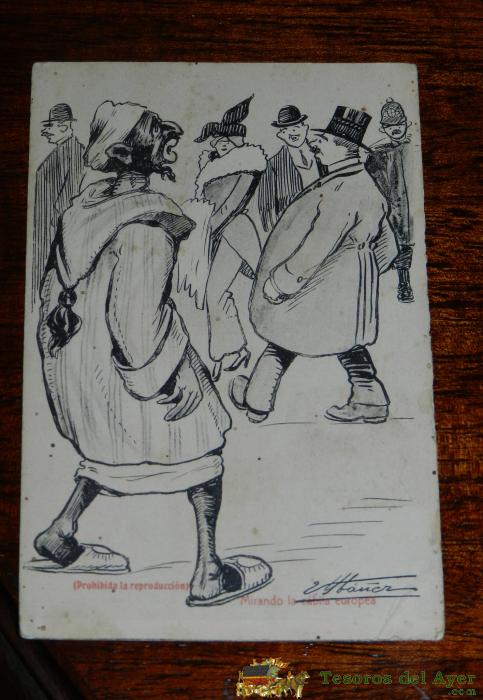 POSTAL ILUSTRACION IBAÑEZ. CARICATURA MORO, GUERRA RIF, MIRANDO LA CABILA EUROPEA, FOTPIA. CASTAÑEIRA, ALVAREZ Y LEVENFELD. NO CIRCULADA.