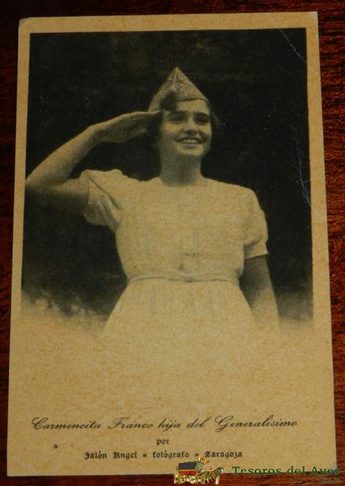 ANTIGUA POSTAL DE CARMENCITA FRANCO HIJA DEL GENERALISIMO CON GORRA DE LA LEGION POR JALON ANGEL - NO CIRCULADA.