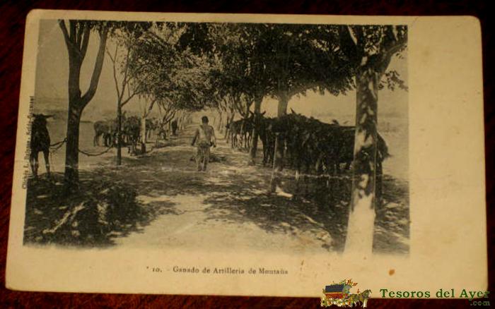 ANTIGUA POSTAL DE GANADO DE ARTILLERIA DE MONTAÑA - N. 10 - NO CIRCULADA.