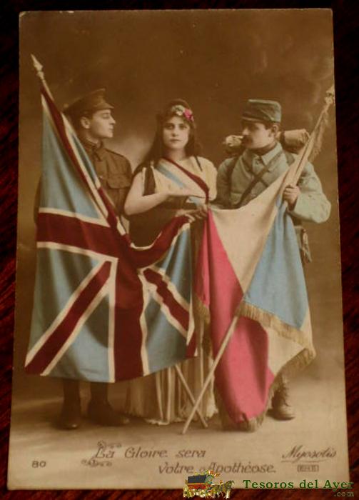 ANTIGUA FOTO POSTAL DE MILITARES - LA GLORIE SERA VOTRE APOTHEOSE - NO CIRCULADA.