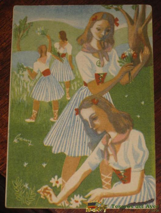 ANTIGUA POSTAL DE LA SECCION FEMENINA DE F.E.T. Y DE LAS J.O.N.S. - ALBERGUES DE JUVENTUDES - CIRCULADA.