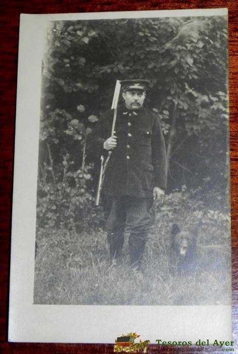 ANTIGUA FOTO POSTAL DE GUARDIA JURADO CON ESCOPETA Y PERRO - NO CIRCULADA.