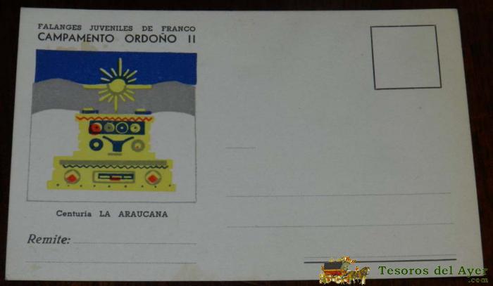 ANTIGUA POSTAL DE LAS FALANGES JUVENILES DE FRANCO, FALANGE, F.E.T. - CAMPAMENTO ORDOÑO II DE RIAñO (LEóN) . CENTURIA LA ARAUCANA, SIN CIRCULAR, EXCELENTE ESTADO DE CONSERVACION.
