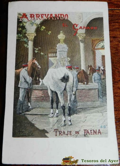 TARJETA POSTAL CALLEJA. SERIE MILITARES Nº 246. ABREVANDO EL GANADO. TRAJE DE FAENA. SIN CIRCULAR.