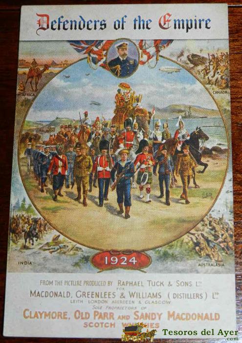 ANTIGUA POSTAL PUBLCITARIA SCOTCH WHISKIES MACDONALD GREENLEES... DEFENDERS OF THE EMPIRE. 1924./ RAPHAËL TUCK & SONS. SIN CIRCULAR