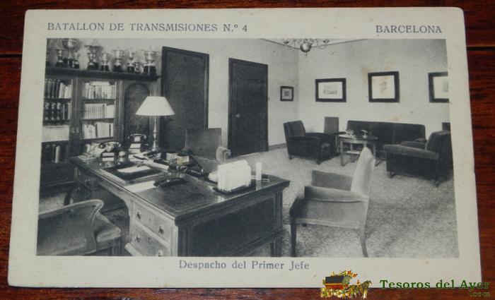 POSTAL DEL BATALLON DE TRANSMIISIONES Nº 1 4 DE BARCELONA, DESPACHO DEL PRIMER JEFE, F. MESAS, ARTE SIN CIRCULAR