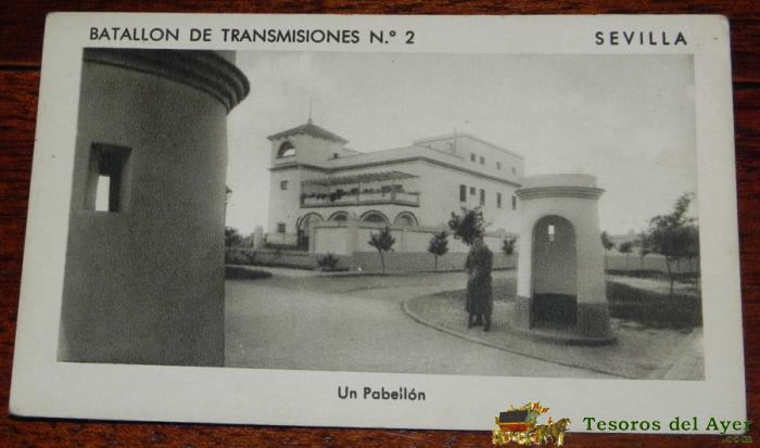 PÒSTAL DEL BATALLON DE TRANSMISIONES Nº 2 DE SEVILLA, UN PABELLON, F. MESAS, ARTE, SIN CIRCULAR