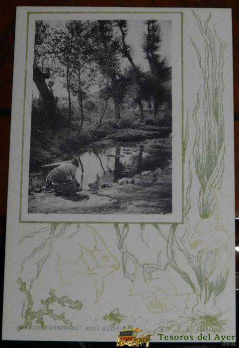 ANTIGUA POSTAL MODERNISTA DE LA COLECCION CANOVAS, SERIE GLORIA, NUM. 7, EL FREGADERO, NO CIRCULADA, SIN DIVIDIR, FOT. DE HAUSER Y MENET.