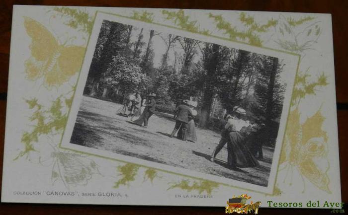 ANTIGUA POSTAL MODERNISTA DE LA COLECCION CANOVAS, SERIE GLORIA, NUM. 4, EN LA PRADERA, NO CIRCULADA, SIN DIVIDIR, FOT. DE HAUSER Y MENET.