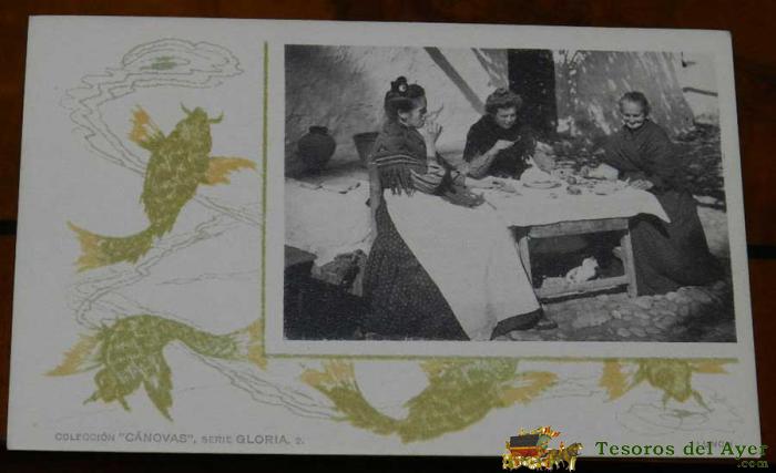 ANTIGUA POSTAL MODERNISTA DE LA COLECCION CANOVAS, SERIE GLORIA, NUM. 2, LUNCH, NO CIRCULADA, SIN DIVIDIR, FOT. DE HAUSER Y MENET.