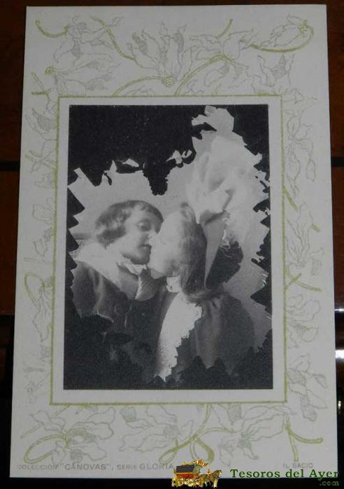 ANTIGUA POSTAL MODERNISTA DE LA COLECCION CANOVAS, SERIE GLORIA, NUM. 5, IL BACIO, NO CIRCULADA, SIN DIVIDIR, FOT. DE HAUSER Y MENET.