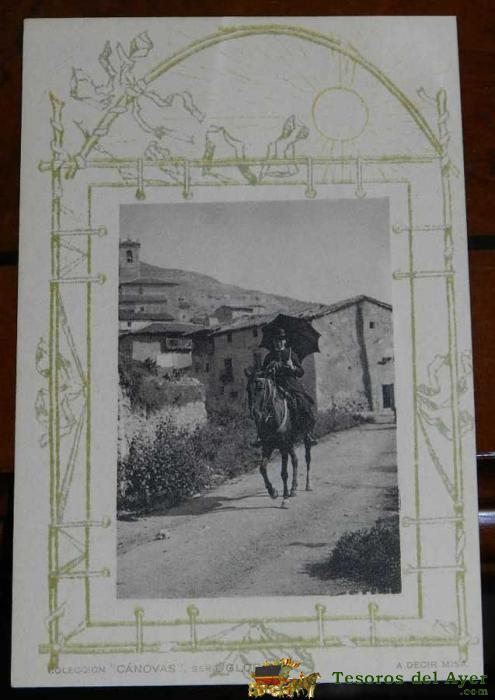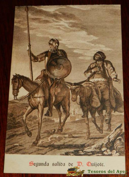 ANTIGUA POSTAL, DON QUIJOTE DE LA MANCHA DE MIGUEL DE CERVANTES SAAVEDRA, 1928, ILUSTRACION DE LA SEGUNDA SALIDA DE DON QUIJOTE, SIN CIRCULAR. OLD POSTCARD, DON QUIXOTE IN MIGUEL DE CERVANTES SAAVEDRA, 1928, ILLUSTRATION OF THE SECOND DEPARTURE OF DON QUI