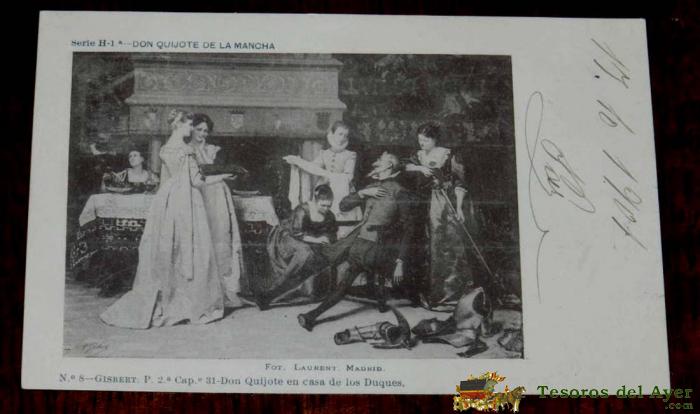 ANTIGUA FOTO POSTAL DE DON QUIJOTE DE LA MANCHA FOT LAURENT. NUM. 8 SERIE H - 1º. CIRCULADA EN 1902 SIN DIVIDIR
