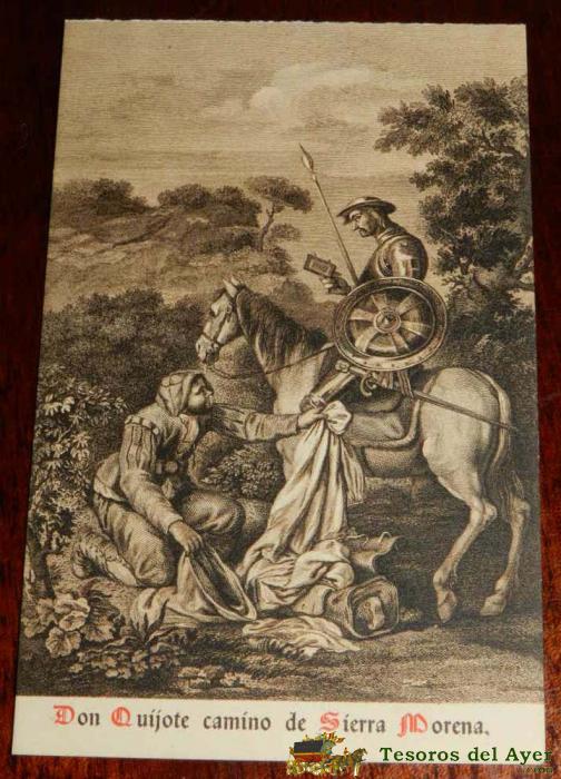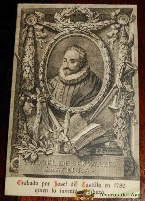 ANTIGUA POSTAL, DON QUIJOTE DE LA MANCHA DE MIGUEL DE CERVANTES SAAVEDRA, 1928, GRABADO POR JOSEF DEL CASTILLO EN 1780, QUIEN LO INVENTO Y DIBUJO, SIN CIRCULAR. OLD POSTCARD, DON QUIXOTE IN MIGUEL DE CERVANTES SAAVEDRA, 1928, ENGRAVED BY JOSEF CASTLE IN 1