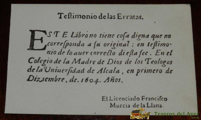 ANTIGUA POSTAL, DON QUIJOTE DE LA MANCHA DE MIGUEL DE CERVANTES SAAVEDRA, 1928, TESTIMONIO DE LAS ERRATAS, SIN CIRCULAR. OLD POSTCARD, DON QUIXOTE IN MIGUEL DE CERVANTES SAAVEDRA, 1928, TESTIMONY OF MISPRINTS, NOT CIRCULAR.