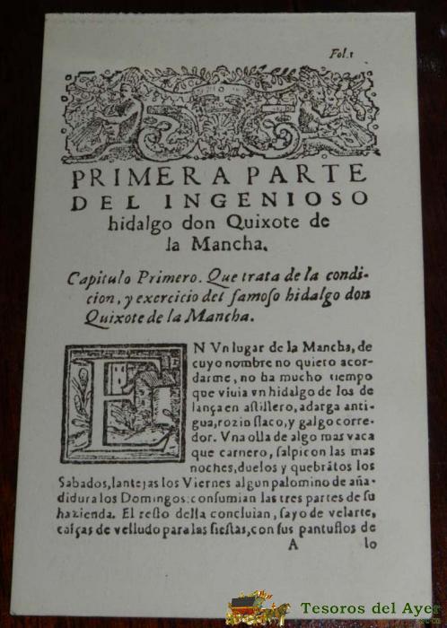 ANTIGUA POSTAL, DON QUIJOTE DE LA MANCHA DE MIGUEL DE CERVANTES SAAVEDRA, 1928, COMIENZO DE LA OBRA, SIN CIRCULAR. OLD POSTCARD, DON QUIXOTE IN MIGUEL DE CERVANTES SAAVEDRA, 1928, BEGINNING OF THE WORK, CIRCULAR.